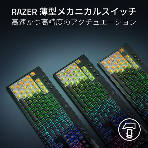 スムーズな押し心地かつ静音性の高いRazer 薄型イエロー リニアメカニカルスイッチを採用