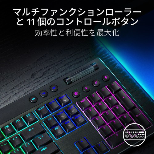 クリック可能なローラー、音楽/デバイス/AI プロンプトを管理する専用メディア & 接続ボタン、ゲームプレイを最適化する4つの専用マクロボタンで、コントロールを効率化。