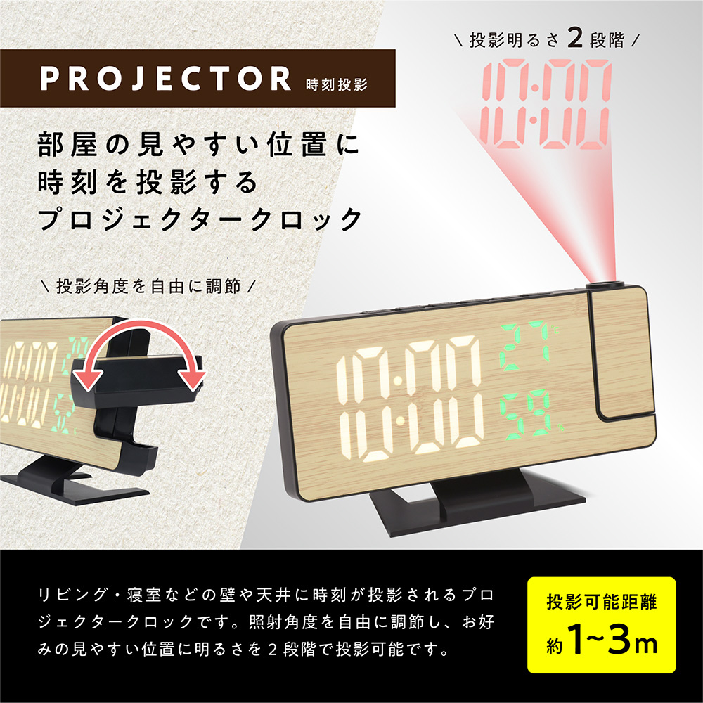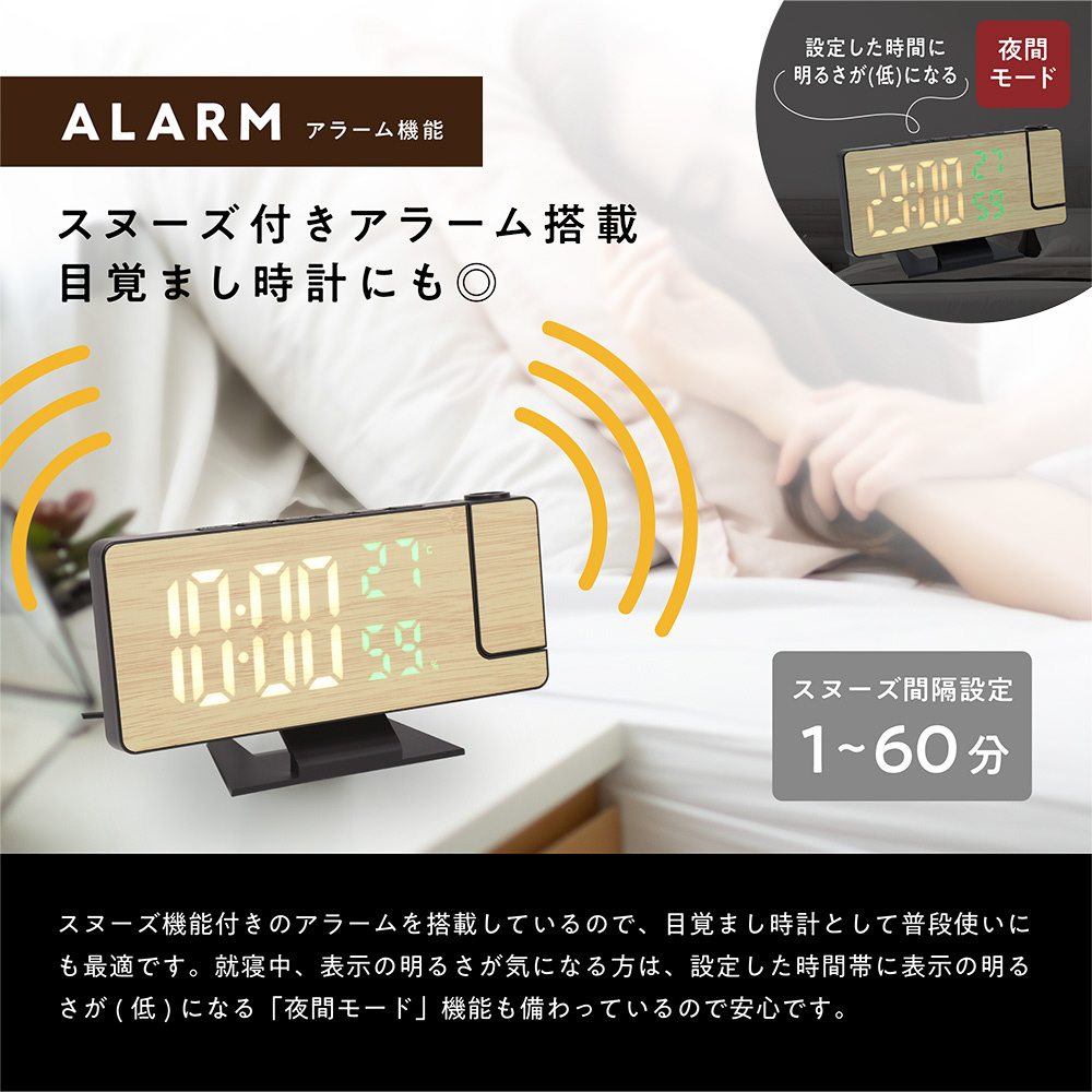 ■ 本体表示を消し、プロジェクターのみでの使用も可能・スヌーズ付きアラーム搭載で目覚まし時計としても使えます。