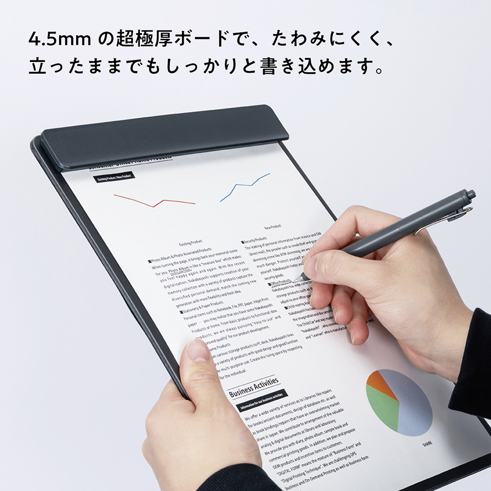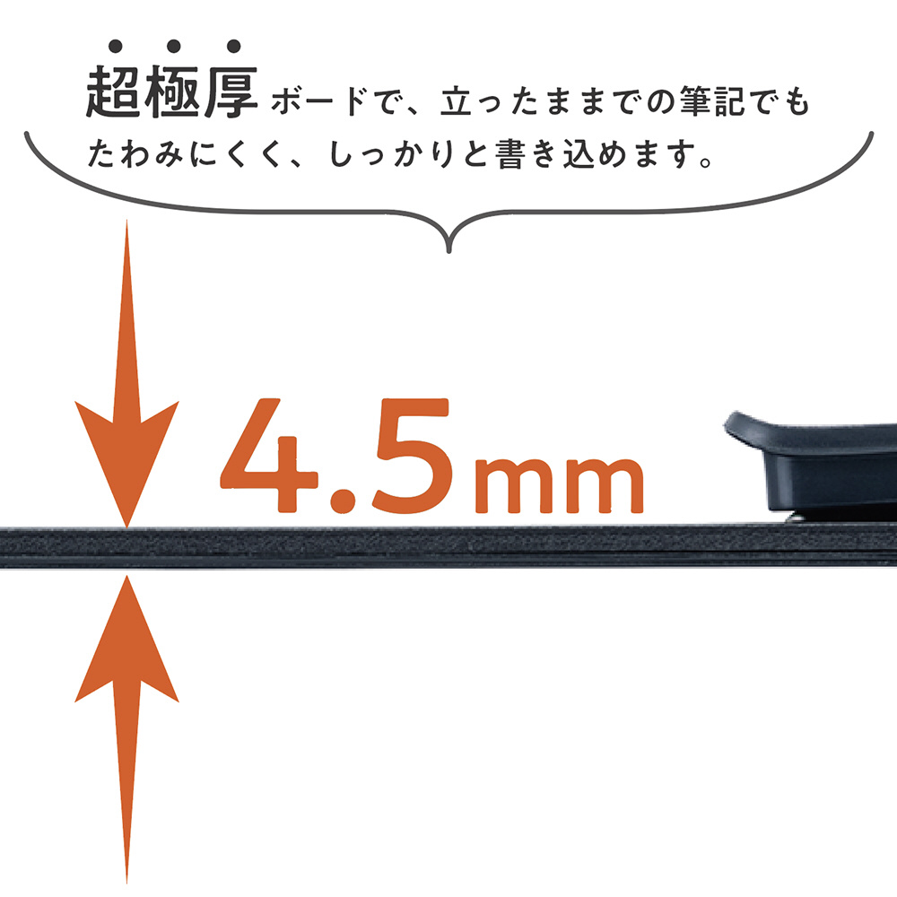 ・4.5mmの超極厚ボードで立ったままでの筆記もたわみにくく、しっかりと書き込める
