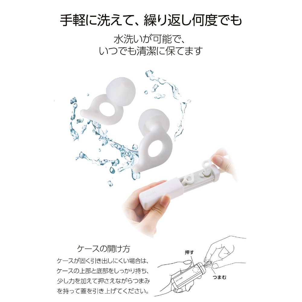 耳栓 睡眠用 遮音性 薄型 横向き寝 快眠 いびき対策 快適フィット 水洗い可 4サイズチップ 収納ケース付 エクリア ホワイト