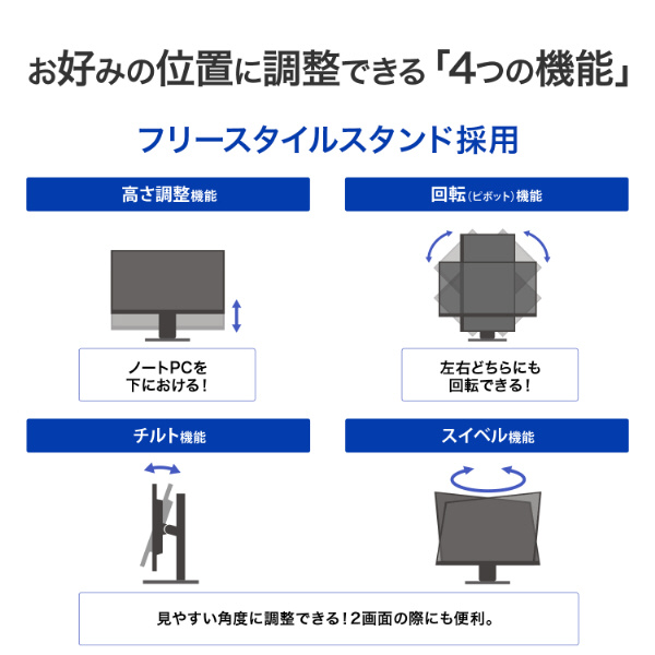 「広可動域なフリースタイルスタンド & USB Type-C搭載24.5型液晶ディスプレイ」