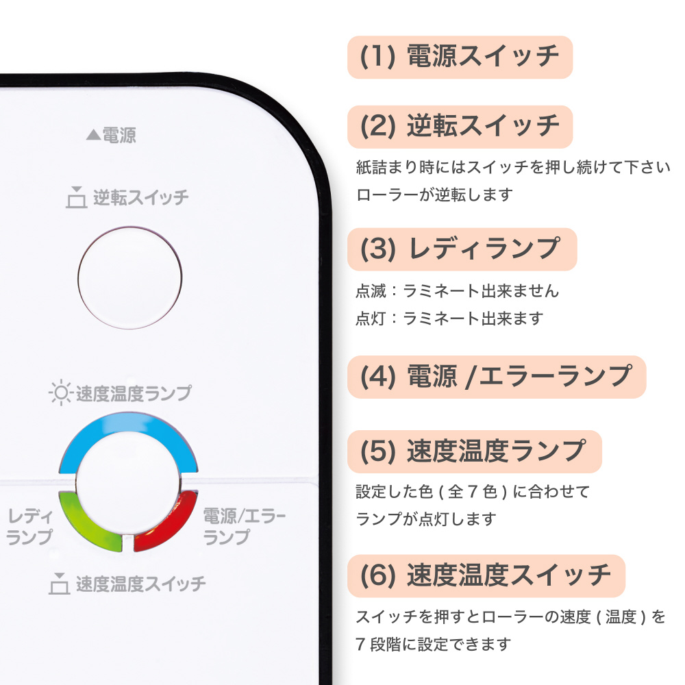 ★速度と温度を7段階調整で仕上がりを綺麗に!4本ローラーラミネーターエントリーモデル