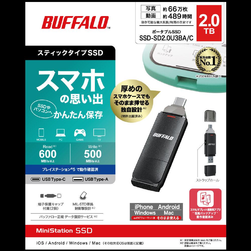 ※使用前に本商品のフォーマット等が必要な場合がございます。詳細は(https://www.buffalo.jp/support/taiou/photobackup.html)をご確認ください。