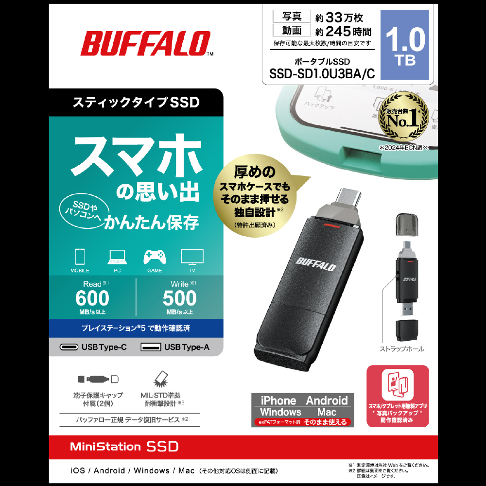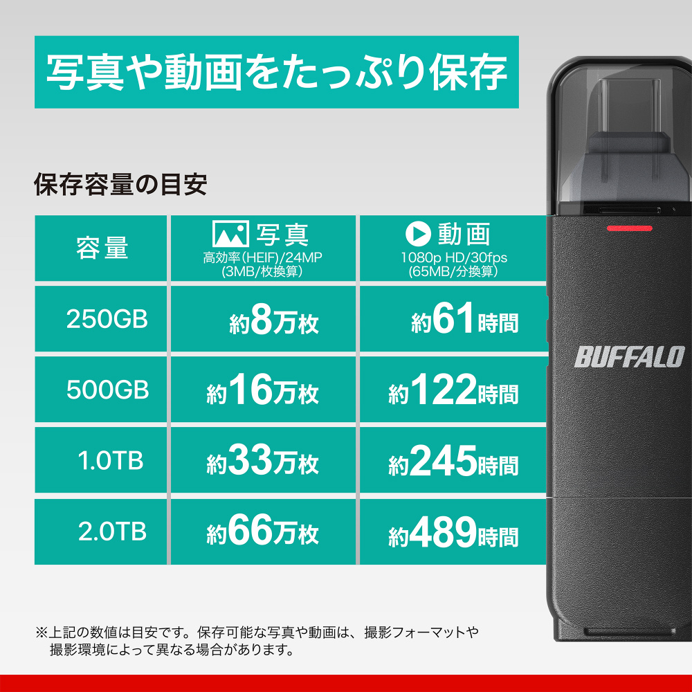 ※使用前に本商品のフォーマット等が必要な場合がございます。詳細は(https://www.buffalo.jp/support/taiou/photobackup.html)をご確認ください。