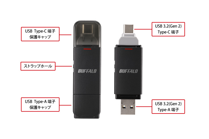 本商品は USB Type-A端子とUSB Type-C端子の両方を備えています。出荷時にexFATでフォーマット済み。