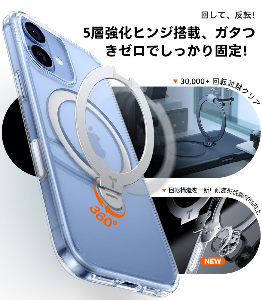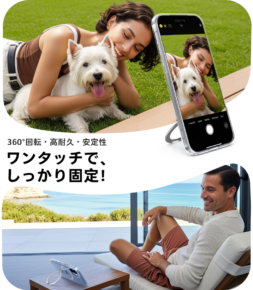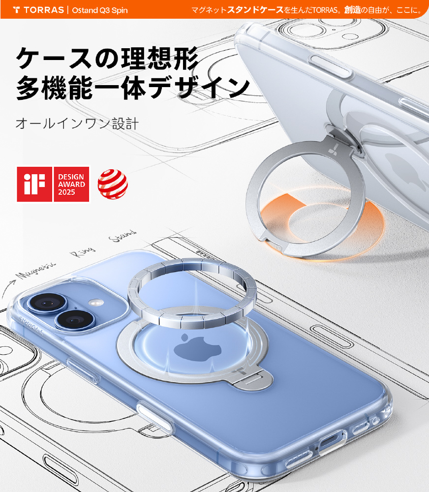 Ostand Q3 Spinは360°回転スタンドを搭載し、縦横自在なスタイルで使用可能。MagSafe対応で、使い勝手とデザイン性を両立した新感覚ケースです。