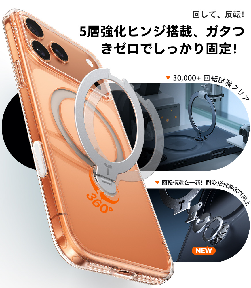 ・TORRAS独自のHalbach磁石技術:内蔵された38個のN52磁石により18Nの吸着力を実現し、すべてのMagSafe対応アクセサリーに対応可能