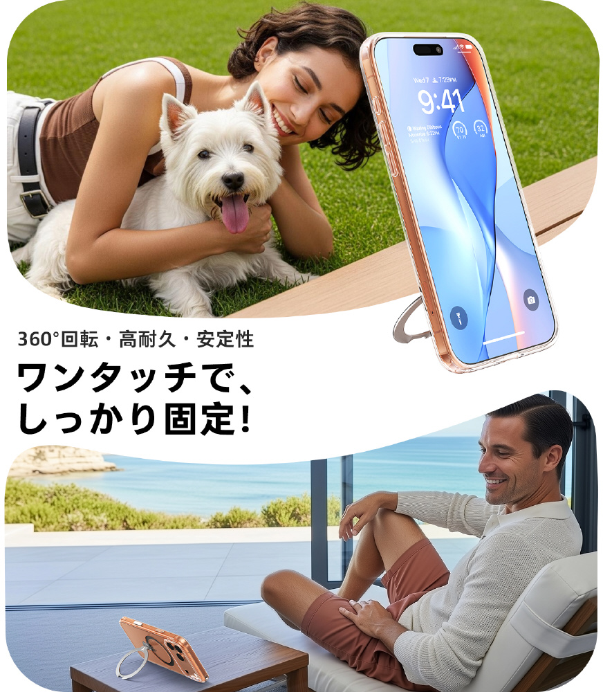 Ostand Q3 Spinは360°回転スタンドを搭載し、縦横自在なスタイルで使用可能。MagSafe対応で、使い勝手とデザイン性を両立した新感覚ケースです。