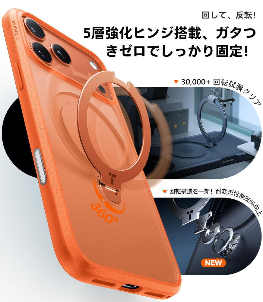 ・TORRAS独自のHalbach磁石技術:内蔵された38個のN52磁石により18Nの吸着力を実現し、すべてのMagSafe対応アクセサリーに対応可能