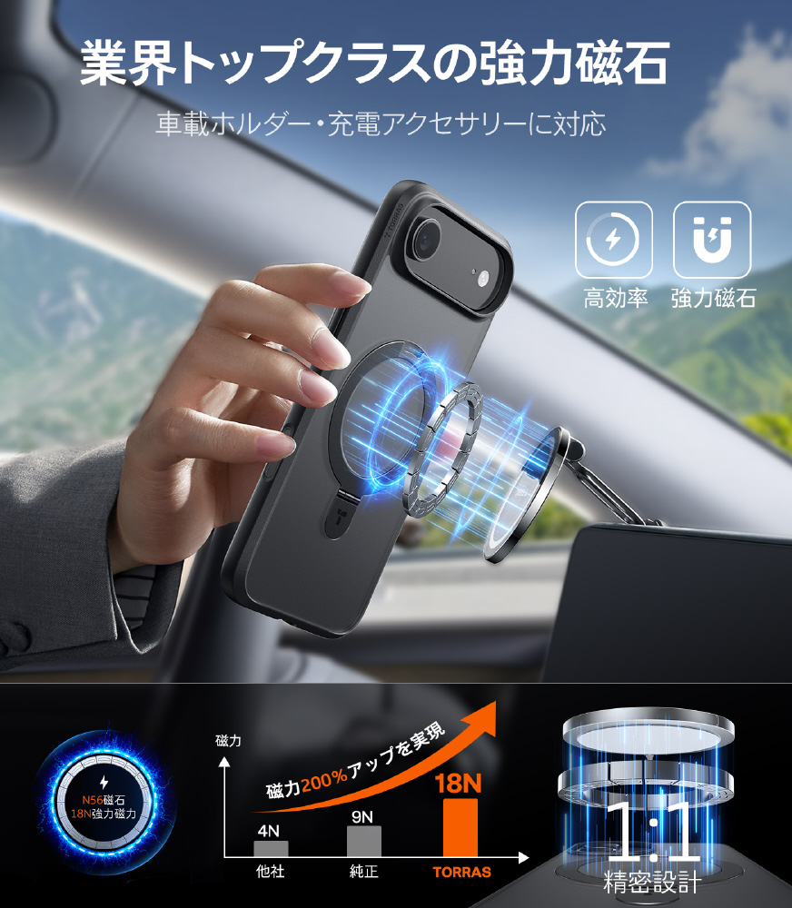 ・TORRAS独自の磁石技術:内蔵された38個のN52磁石によりMagSafeアクセサリーに対応。