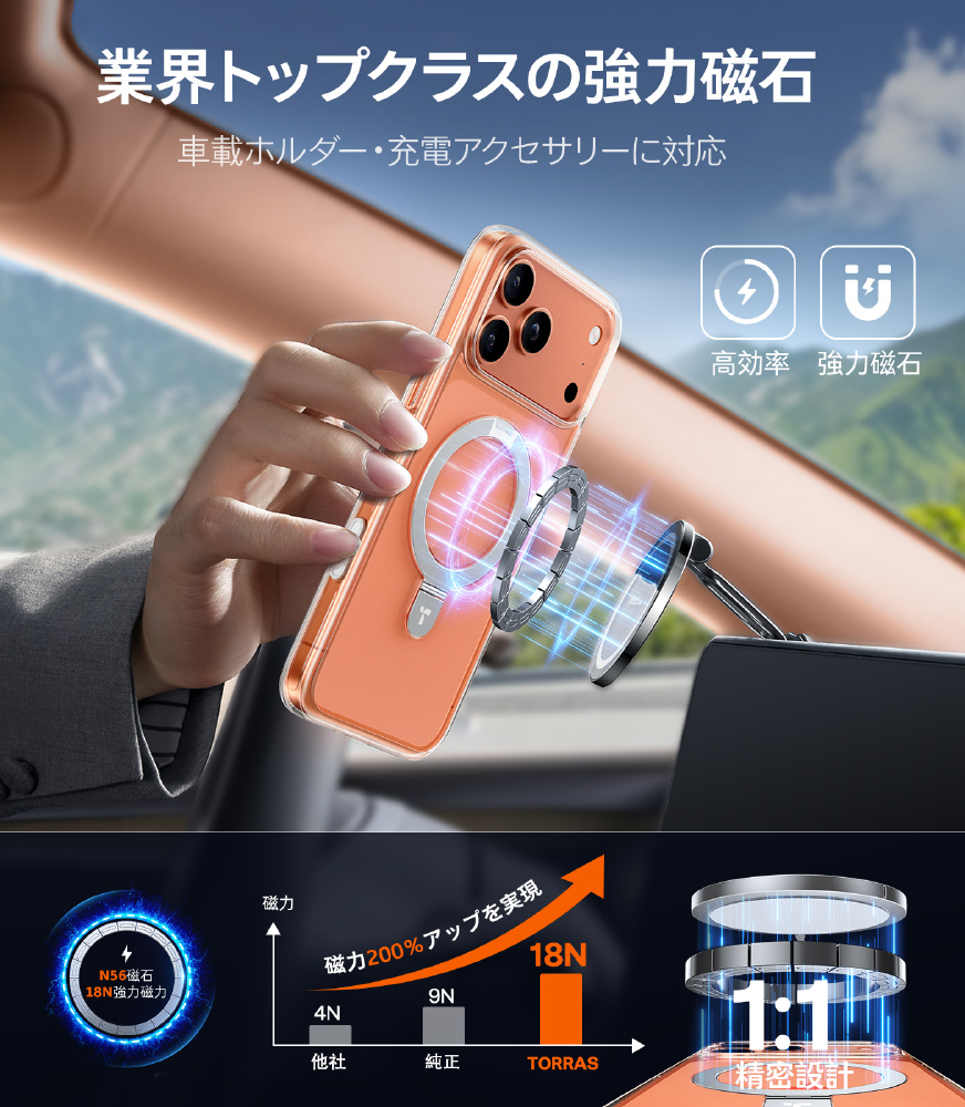 ・TORRAS独自の磁石技術:内蔵された38個のN52磁石によりMagsafeアクセサリーに対応。