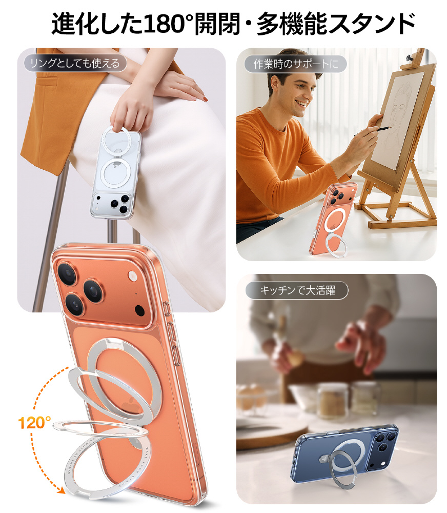 ・最大180°まで開閉可能なスタンドで、画期的な使いやすさを実現!(30000回以上の開閉テスト済み)