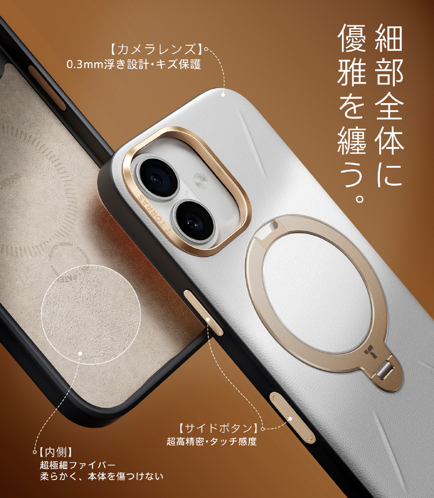 ・TORRAS独自の「Halbach」マグネット特許技術で、N52マグネットブラケット38個が内蔵され、MagSafeアクセサリーに対応。