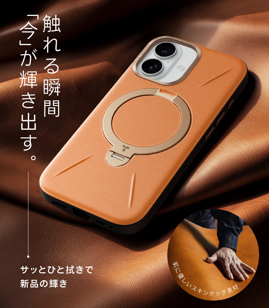 レザー調の上品な質感と360°回転スタンドを融合したQ3レザートーン。ビジネスでもプライベートでも映える、大人のための高機能ケースです。