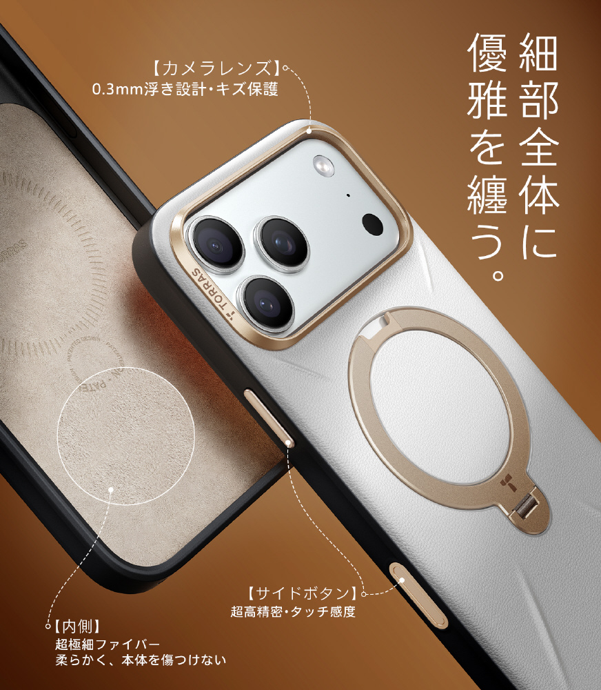・TORRAS独自の「Halbach」マグネット特許技術で、N52マグネットブラケット38個が内蔵され、MagSafeアクセサリーに対応。