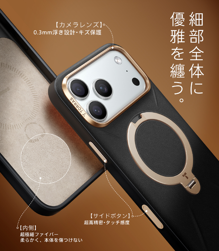 Torras - Ostand Q3 レザートーン Case for iPhone 17 Pro