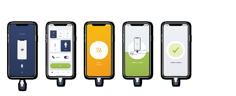ヒートイットはスマートフォンの充電ポートに挿し込んで使用する虫さされ対策機器です。患部を約51℃で短時間温めます。