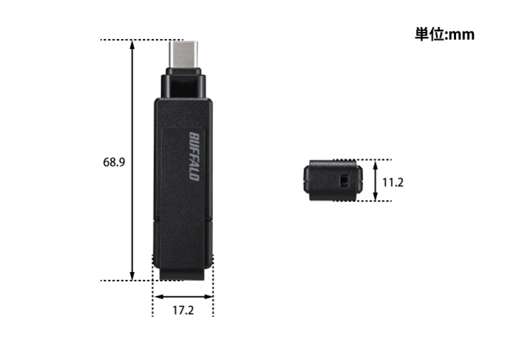 本体サイズ W17.2xH11.2xD68.9mm ※突起部除く