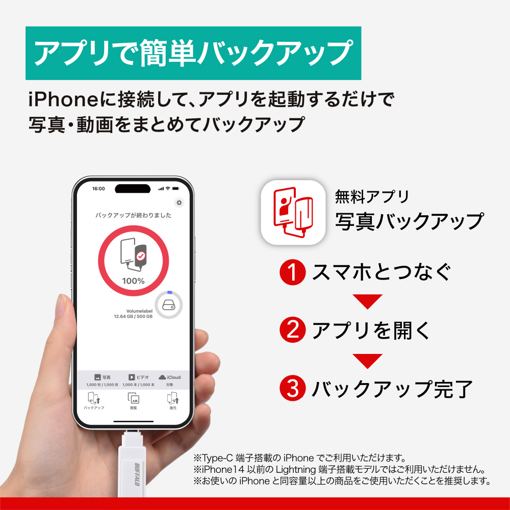 ・アプリの詳細(https://www.buffalo.jp/topics/special/detail/iphone-usb-backup.html)