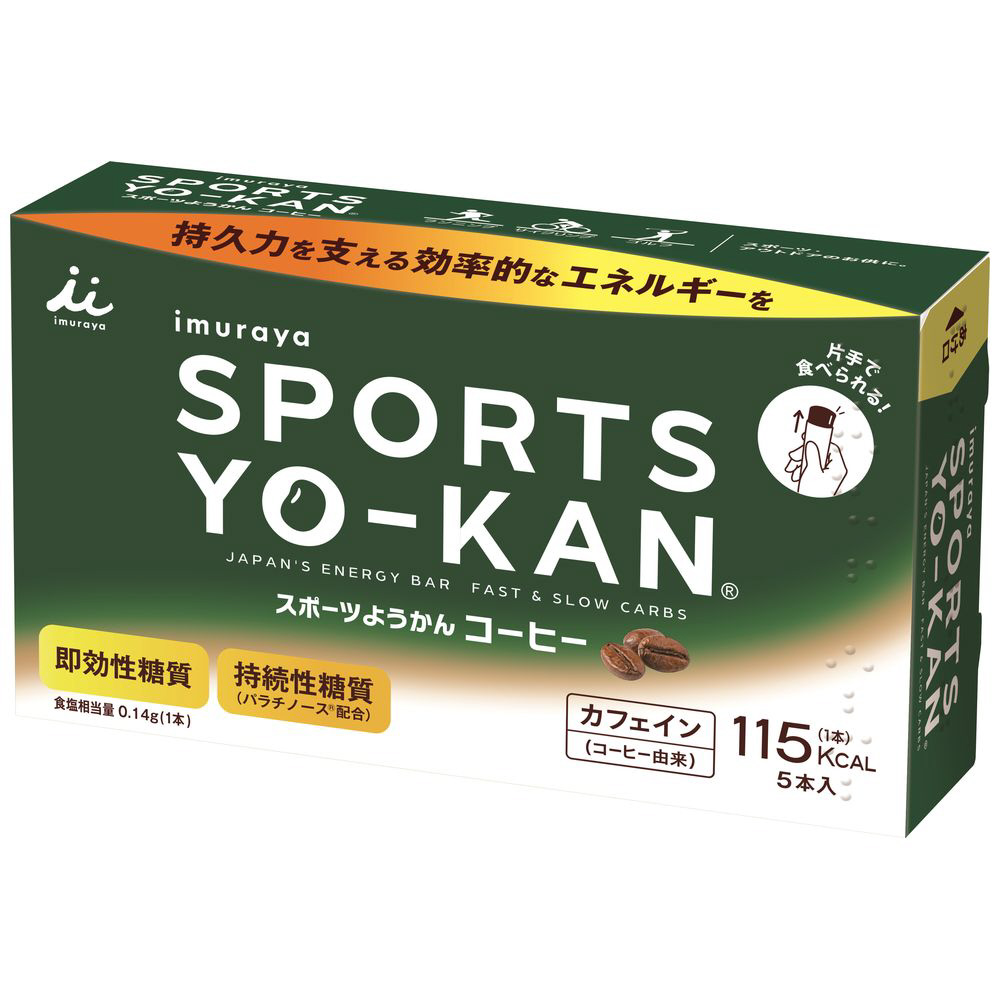 コーヒー味のスポーツようかんです。コーヒー由来のカフェイン(40mg/本)で勝負所での一押しをサポート!