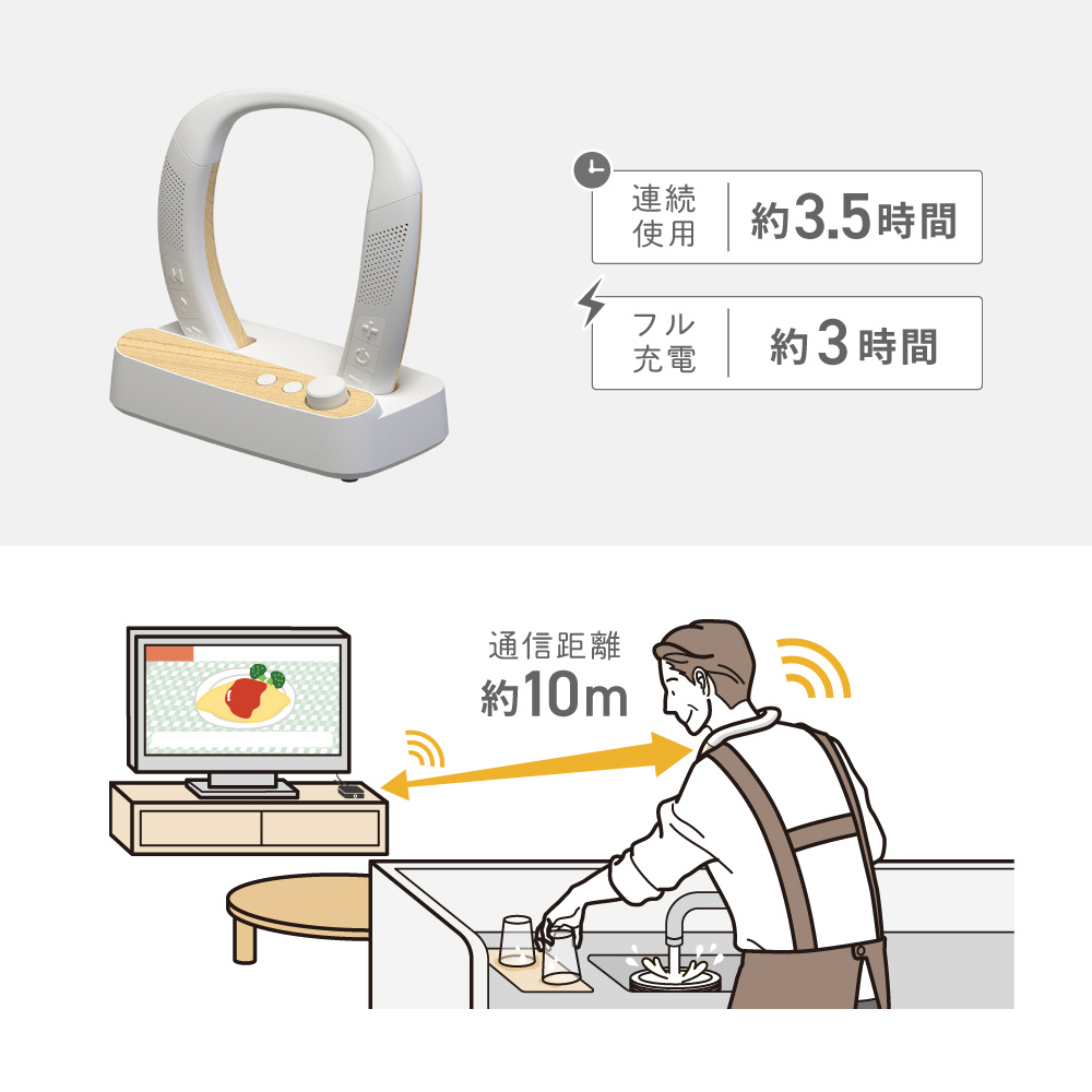 ■耳をふさがず、周りの音も聴こえる首掛けスピーカーです。