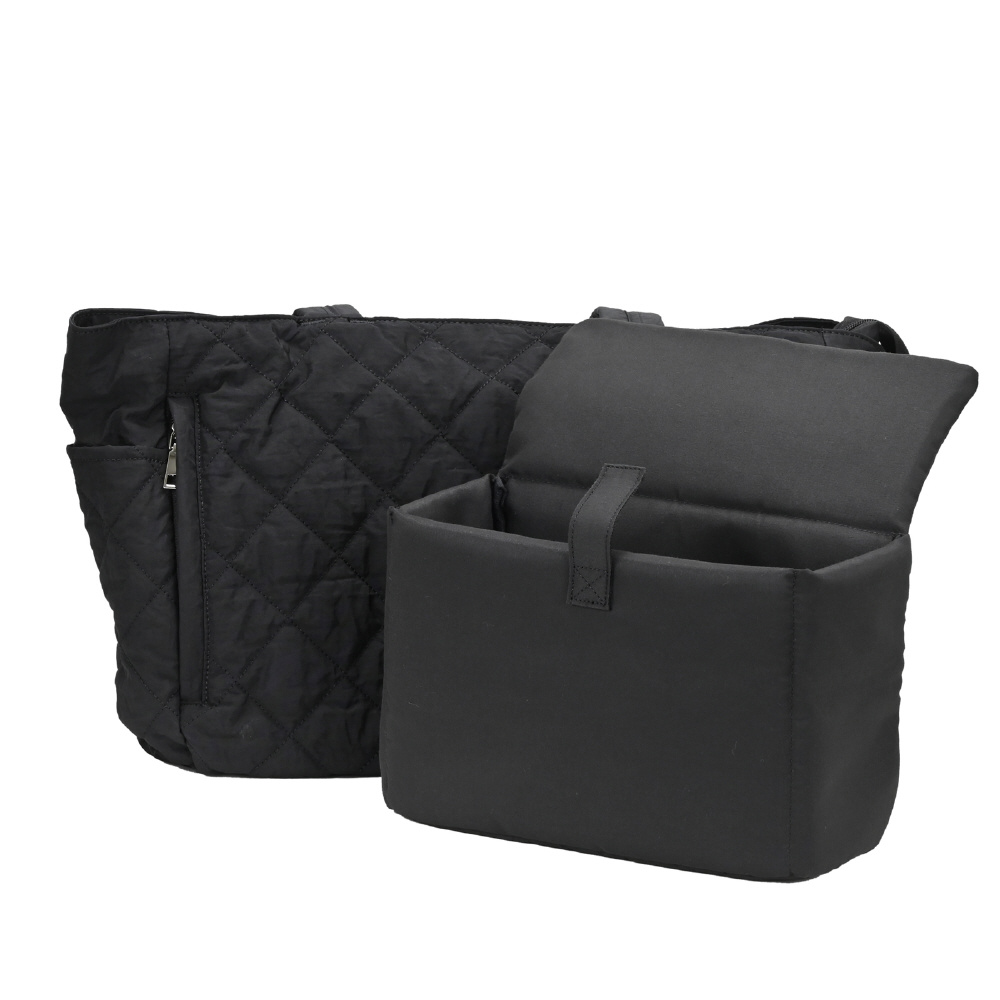 ナチュラルな雰囲気の大きめキルティングトートバッグに、同色のカメラインナーボックスをセット。軽量な生地を使用した、ソフトな手触りのトートバッグです。カメラインナーは衝撃に強い10mm厚の蓋付きボックスタイプ。