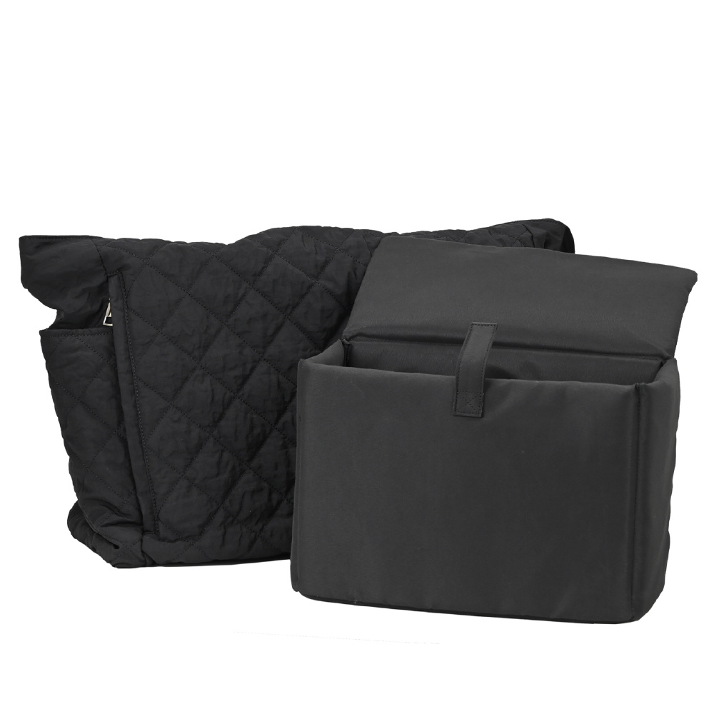 ナチュラルな雰囲気の大きめキルティングトートバッグに、同色のカメラインナーボックスをセット。軽量な生地を使用した、ソフトな手触りのトートバッグです。カメラインナーは衝撃に強い10mm厚の蓋付きボックスタイプ。