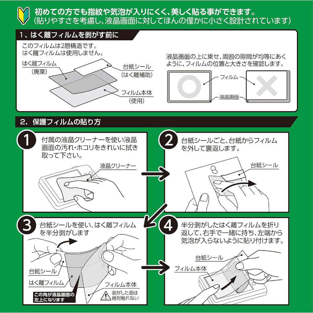 ※貼りやすさを考慮し、液晶画面に対してほんの僅かに小さく設計されています。