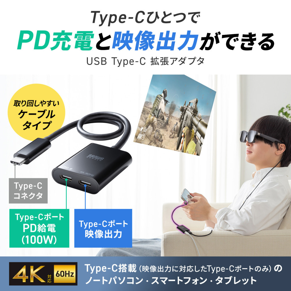 USB-Cポートを映像と充電に分岐。VRゴーグルやモバイルモニターに最適なUSB Type-C拡張アダプタ。
