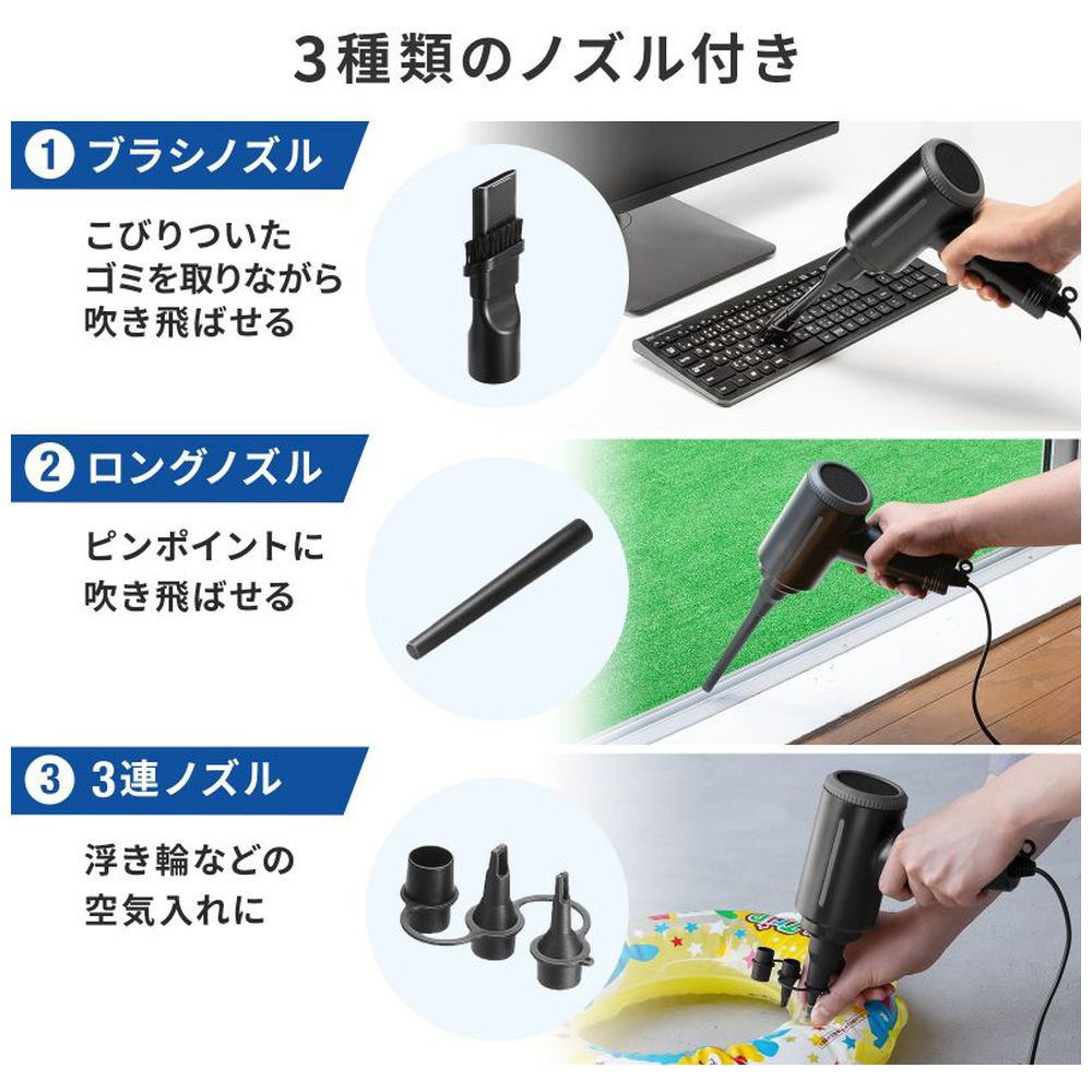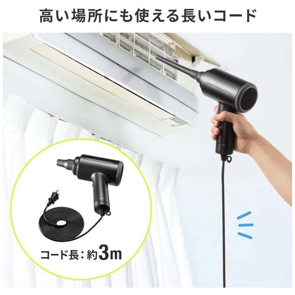 〔電動エアダスター〕AC電源 無段階風量調整可能 電源コード長3m 電池切れの心配なし ガス不使用 ノズル交換可能 逆さ使用可能 CD-ADE8BK