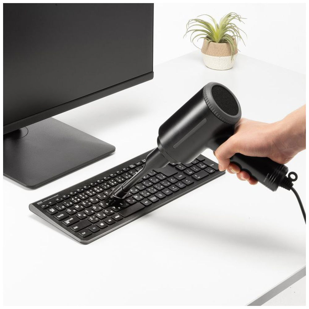 ■逆さにしても安定して噴射できる設計で、パソコンやキーボードの裏側など細かい場所も手軽に掃除できます。