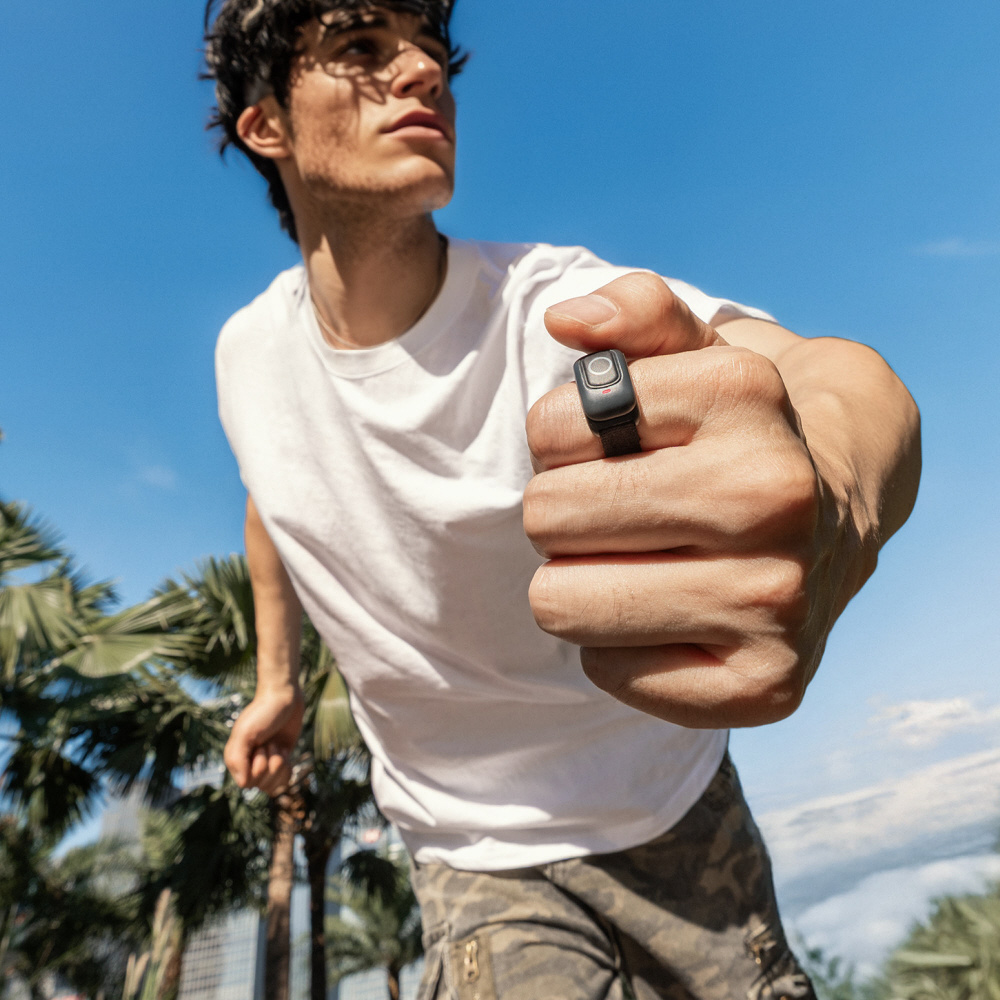 親指をタップするだけでInsta360を操作できるリモコンリング。