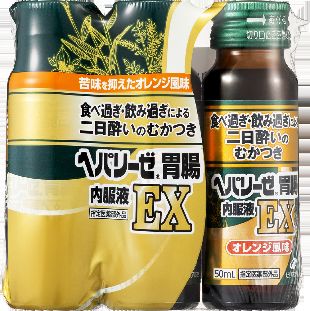 ヘパリーゼ胃腸内服液EXは苦味を抑えたオレンジ風味の健胃清涼剤です。香りによって味覚や嗅覚を刺激して反射的な唾液や胃液の分泌を促す作用のある健胃成分と、胃粘膜保護作用や胃の運動を高める成分を配合しました
