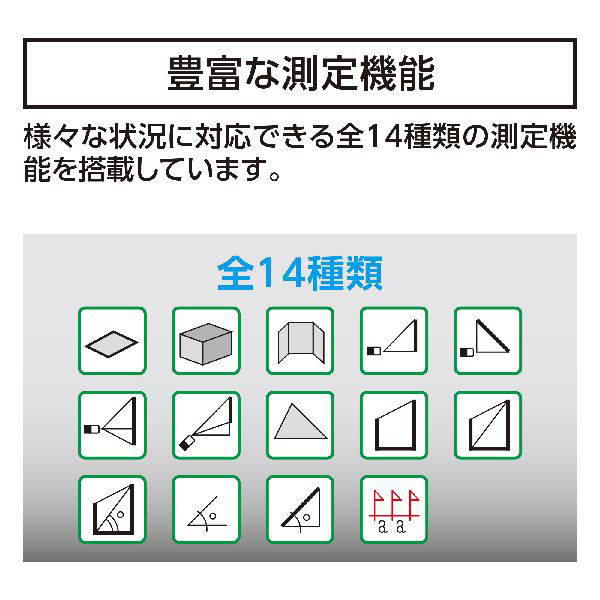 様々な状況に対応できる全14種類の測定機能を搭載しています。