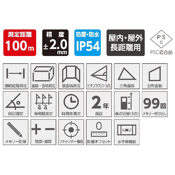 ●精度(屋外):±(2.0+0.1×D[m])mm
