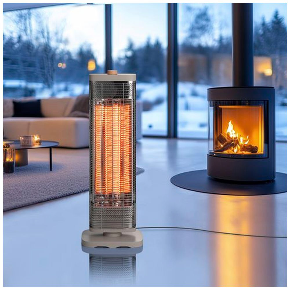 スマートWカーボンストーブ グレージュ CBT2514 [カーボンヒーター /人感センサーなし /首振り機能]