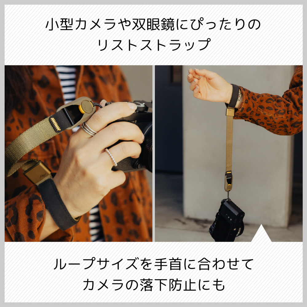 1本のアンカーでカメラなどへ接続する、機能的なリストストラップで、小型カメラや双眼鏡にぴったりのサイズです。