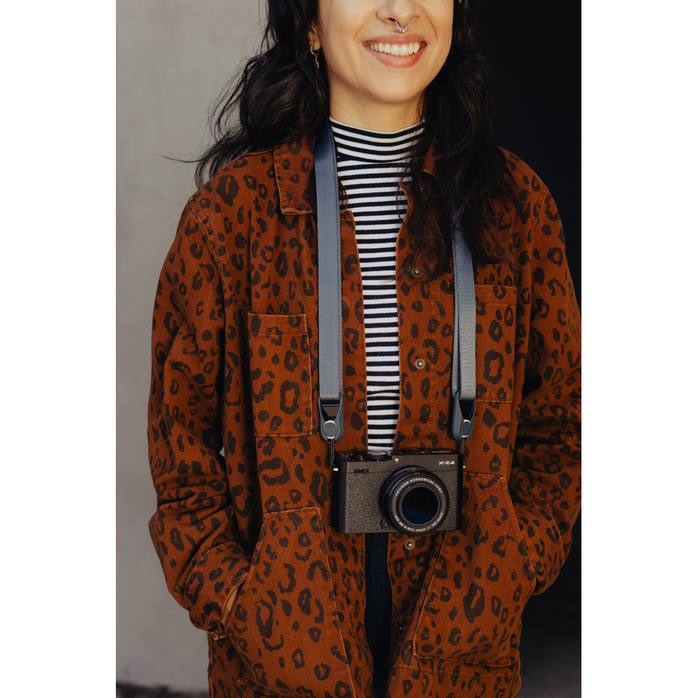アルミニウムとハイパロン製のクイックアジャスターにより、指1本で長さ調節可能なスマートなストラップ。スリングストラップ、ショルダーストラップ、ネックストラップとして使用できます。