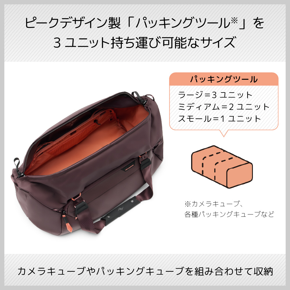 ※別売りのカメラキューブやパッキングキューブを3ユニット収納可能。