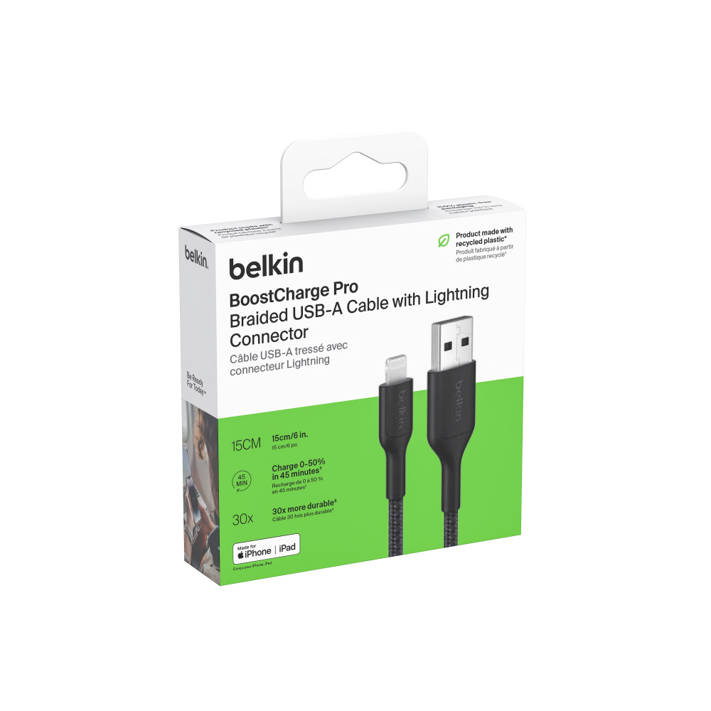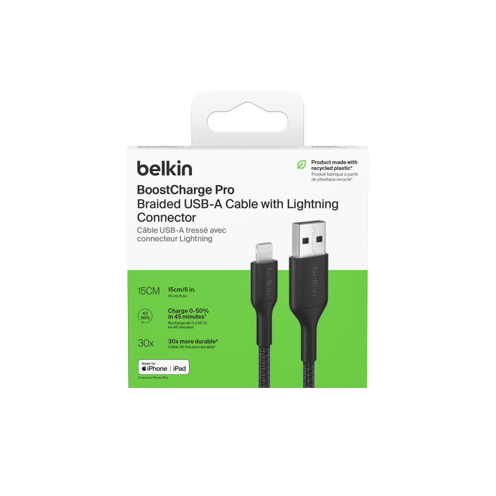USB-A to Lightning 編組ケーブル 15cm ブラック CAA020fq0MBK