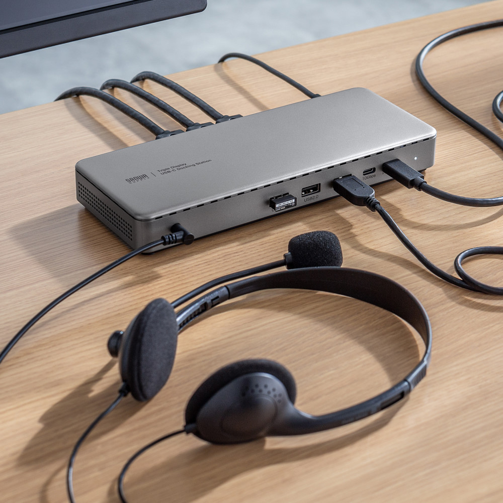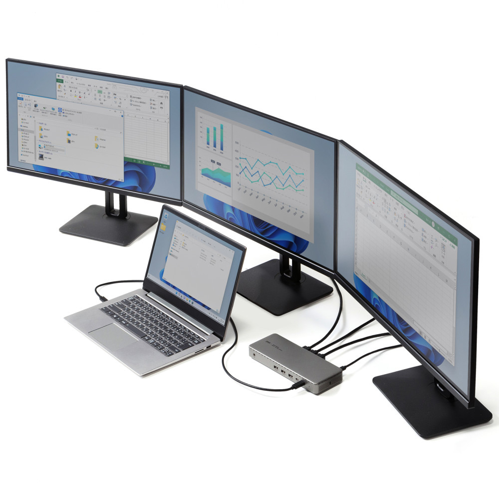 USB Type-Cケーブル1本の接続で3台のディスプレイに4K/60Hzの滑らかな映像が出力できるドッキングステーション。