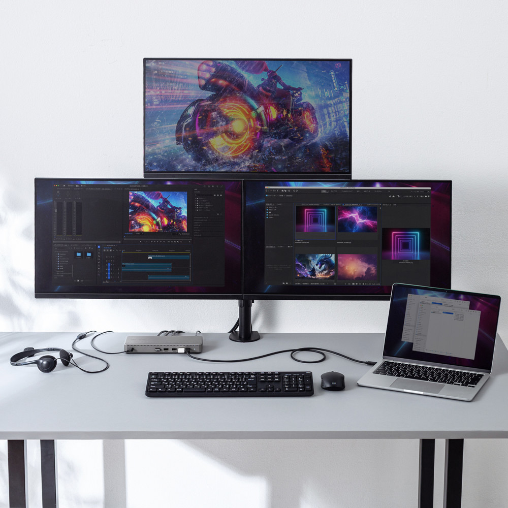 ■4K解像度かつ60Hzの滑らかな映像を、最大3画面同時に出力できる高性能ドッキングステーションです。