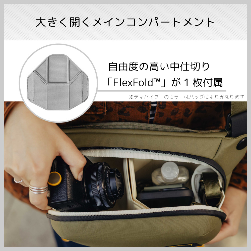 同梱物:中仕切り(FlexFold?) × 1、ショートエクスターナルキャリーストラップ × 2