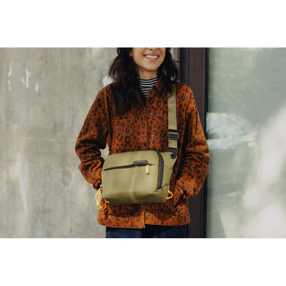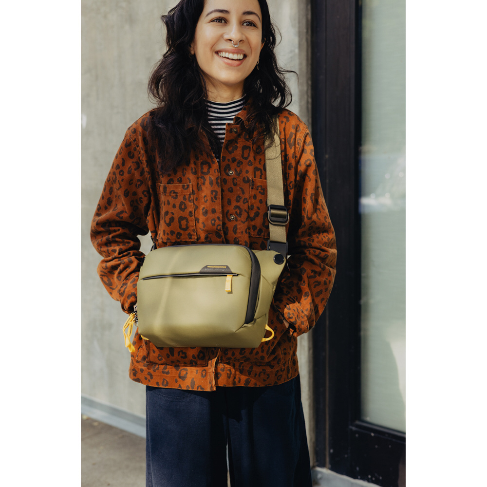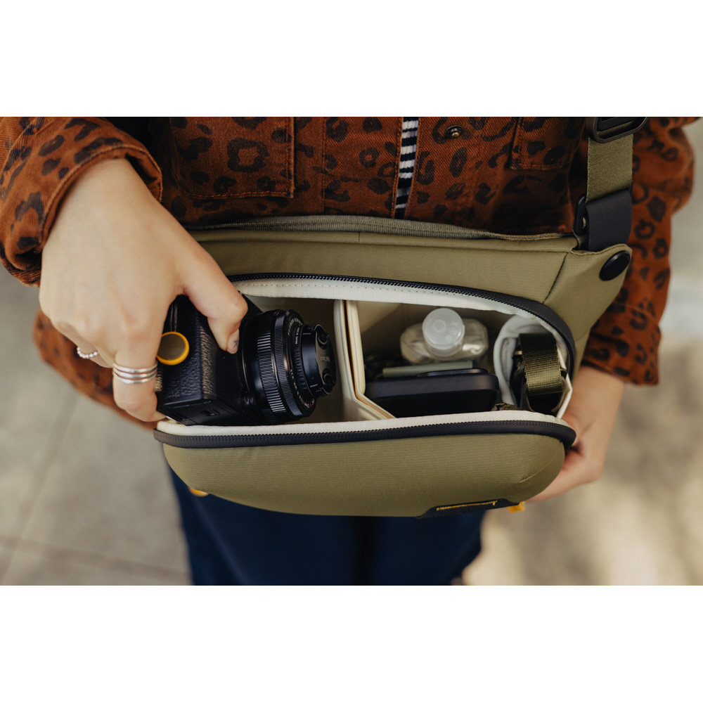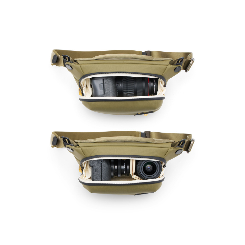 小型・軽量で、機動性に優れたスリングバッグ。コンパクトなミラーレスカメラとレンズなどを収納できます。クロスボディストラップの取り付け位置を変更することで、ウエストバッグとしても使用できます。