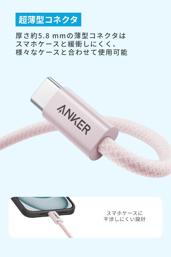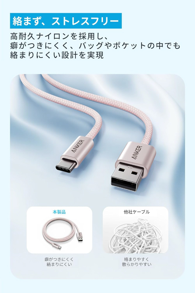 Anker Zolo USB-C & USB-A ケーブル 1.0m ピンク A8052051