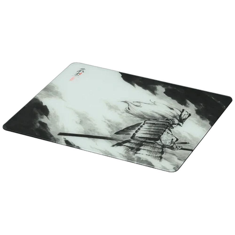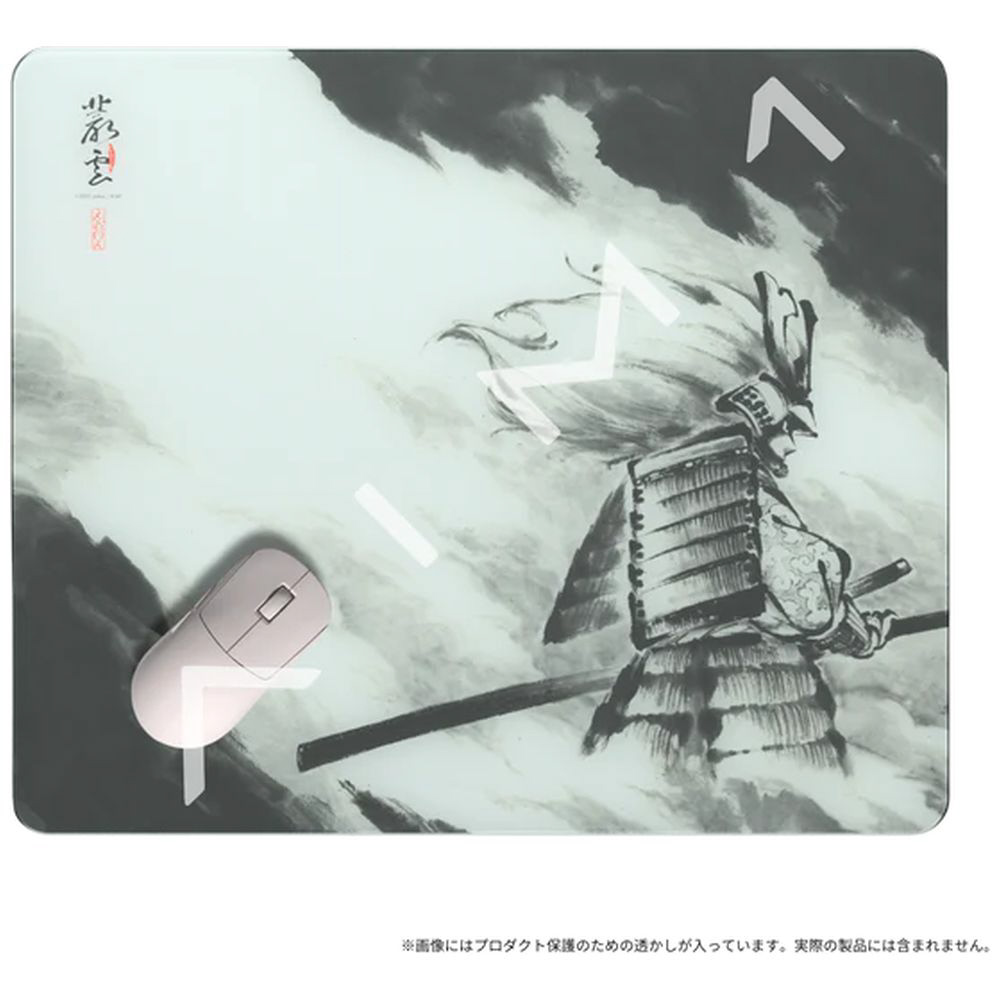 描かれたのは一振りの構え。墨の流れは雲の如く、ただ静かに、ただ深く、デスクに魂を落とす。イラストレーター「じんかい」氏との共演により誕生した「叢雲」は、沈黙の中に気配が漂う一枚。ガラス特有の鋭い滑走性に、芯あるコントロール性を宿し、鋭く静かな一閃を。その一振りが、戦局を変える。
