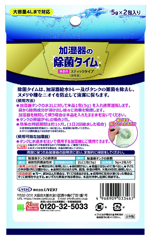 加湿器の除菌タイムスティックタイプ 活性炭 2包