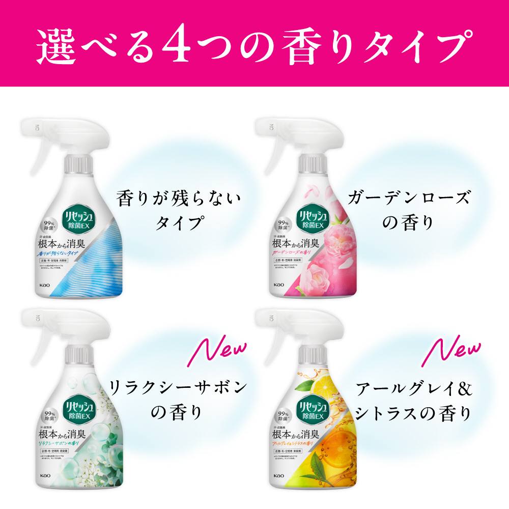 汗・皮脂臭を根本から消臭&99%除菌*◆布の奥まで浸透して、イヤなニオイを撃退◆中和消臭技術+皮脂酸化ブロック技術で、あとから衣類・布製品に付着する汗・皮脂臭の防臭まで◆99%ウイルス除去*※◆アールグレイ&シトラスの香り*すべての菌・ウイルスを除去するわけではありません。布上での効果。※エンベロープタイプのウイルス1種で効果を検証。