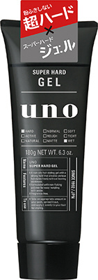 ガチッと固定!超強力ジェル。アンチオイリー・無香料。髪をいたわるトリートメント効果。水をつければ再整髪可能。ごわつきなく、超ハードなセット力でガチッと固定。